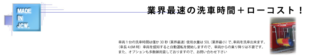 1台の洗車時間が業界最速の30秒/台を実現しました。もちろん、使用水量も最も少ない50L/台を可能、